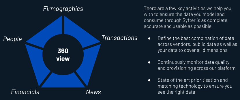For Private Equity, selecting of 3rd party data providers is key for optimizing their deal-sourcing effectiveness. However, the practicalities of reviewing multiple data platforms to gain market coverage and create a single, timely view of the market pose significant challenges. In our last blog, we covered the challenges, and respective solutions, that primarily stem from the presence of data adoption within private equity firms – this piece will cover how PE firms can achieve the ideal shape of data necessary for origination and deal sourcing teams, or what we like to call – the 360-degree view.